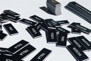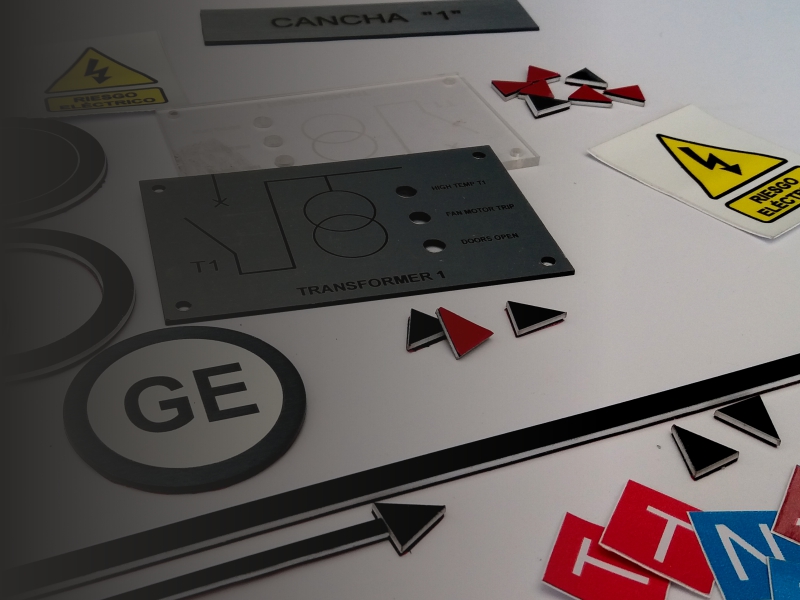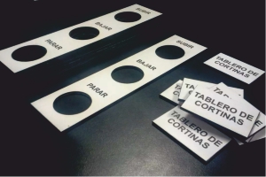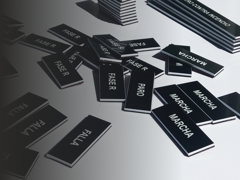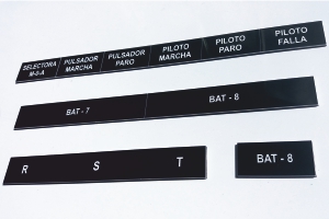 Para frente de tableros y equipos. Con grabado y calados según diseño.