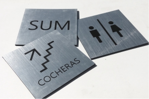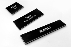 Color plateado, con letras grabada en color Negro Resistente rayos UV.